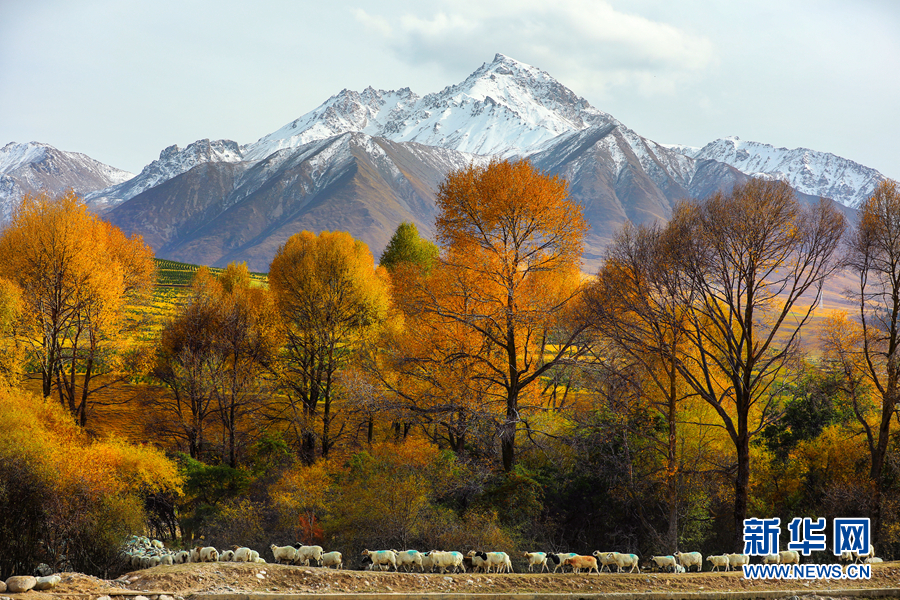 金黃色的樹木與遠(yuǎn)山交相輝映,處處呈現(xiàn)出醉人的美景。新華網(wǎng) 蘇金元攝