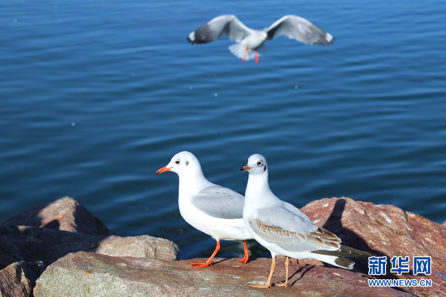 湖面上,成群結(jié)隊(duì)的棕頭鷗