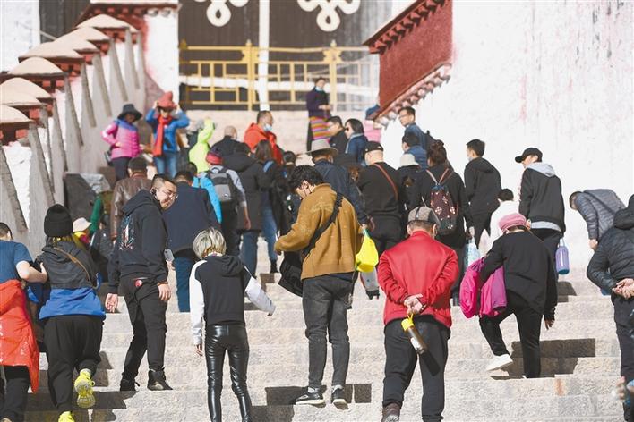 近年來,隨著“冬游西藏”活動推出,游客實現(xiàn)了赴藏旅游成本降一半、旅游體驗更完美的“夢想”。圖為11月8日,游客在布達拉宮參觀游玩。記者 李洲 攝