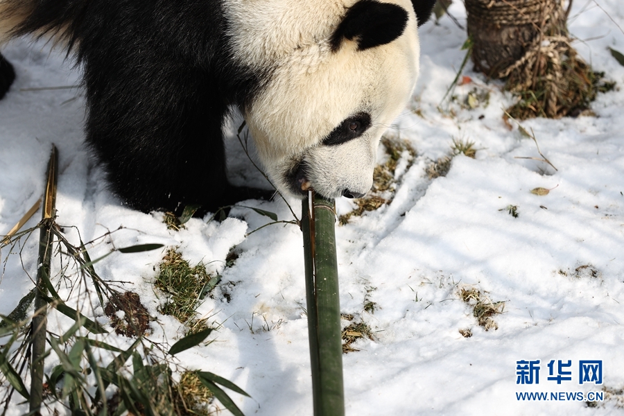 11月21日,西寧市熊貓館一只大熊貓?jiān)诔灾褡?。新華社記者 吳剛 攝