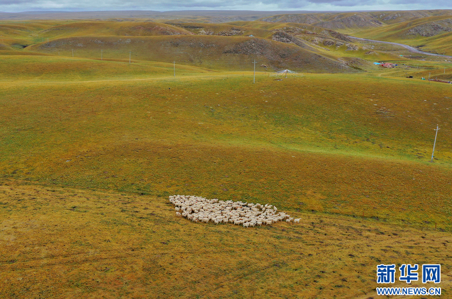 羊群在草原上奔馳。新華網(wǎng) 潘彬彬攝