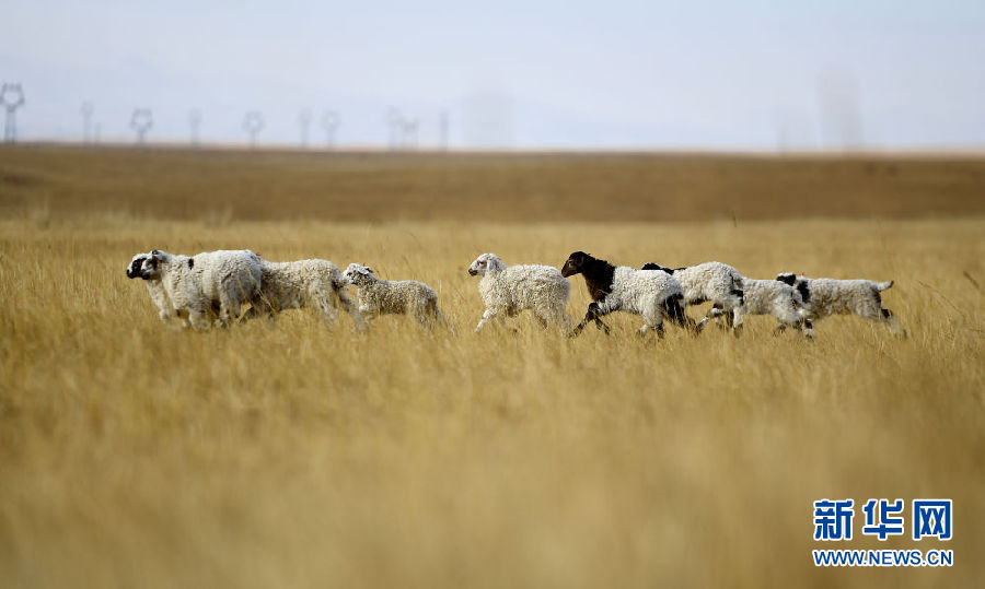 在青海省剛察縣泉吉鄉(xiāng)寧夏村,達(dá)日杰家的小羊羔在草場(chǎng)上(11月12日攝)。 新華社記者 張宏祥 攝