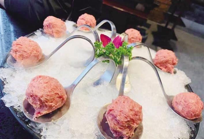 “我們鎮(zhèn)三關老火鍋所采用的有機特色菜品全部出自自家農場,綠色健康無污染,顧客可以吃得放心、安心?;疱仠讉鞒姓谥貞c火鍋做法,辣而不燥,口齒留香,讓人愛不釋口。同時,采用純牛油熬制,沒有加入任何添加劑,吃完后不會全身彌漫著火鍋味道。我們將繼續(xù)為大家?guī)斫】禒I養(yǎng)的火鍋,歡迎前來品嘗。”代紅介紹。(圖 記者 張雪芳)