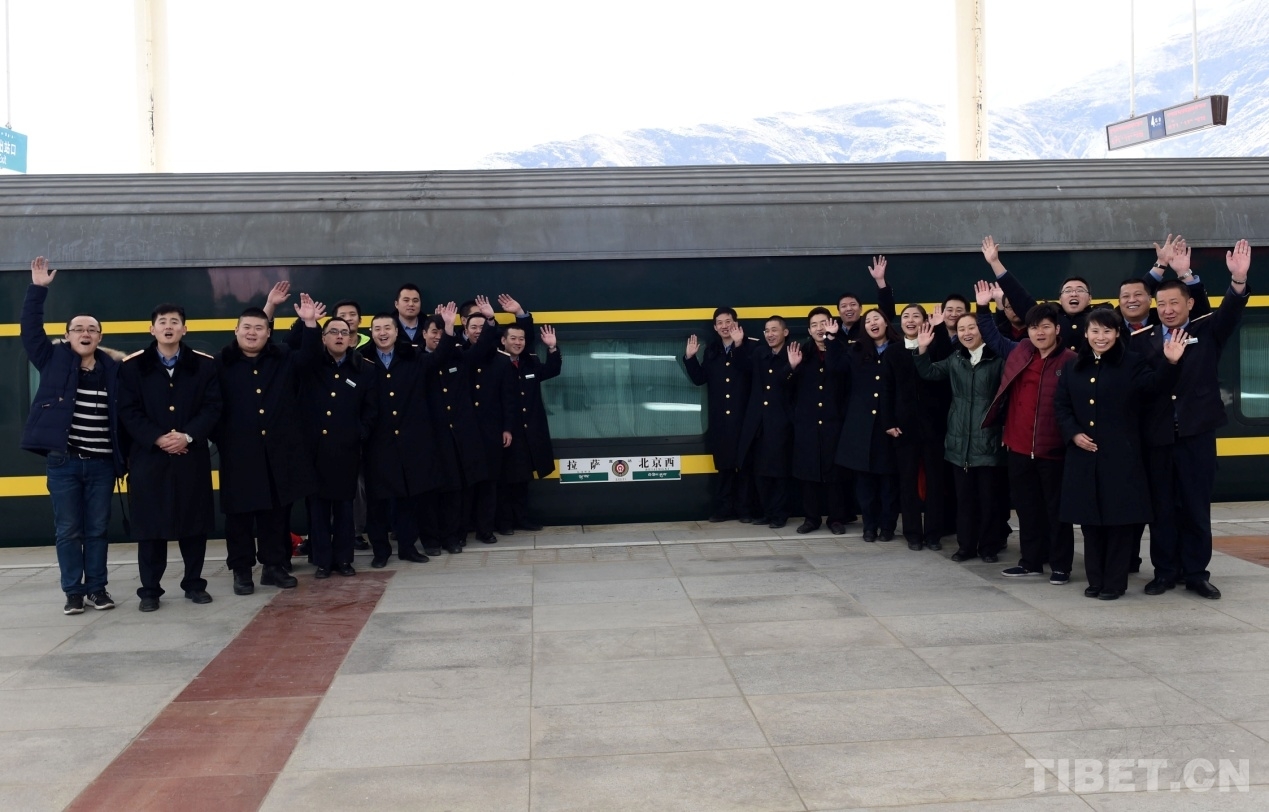 在拉薩火車站站臺(tái)上,我與乘務(wù)員們眼噙淚水,與無數(shù)次行駛在藏北高原的列車拍照留念。為優(yōu)化進(jìn)藏列車運(yùn)行線路,推進(jìn)東北地區(qū)等老工業(yè)基地的振興,從2016年2月1日至5日,京藏列車的5個(gè)車體由北京鐵路局移交沈陽鐵路局,整趟列車線路以后延伸至沈陽,北京改為經(jīng)停站。2017年,這趟列車又移交給了青藏鐵路公司負(fù)責(zé)運(yùn)行。