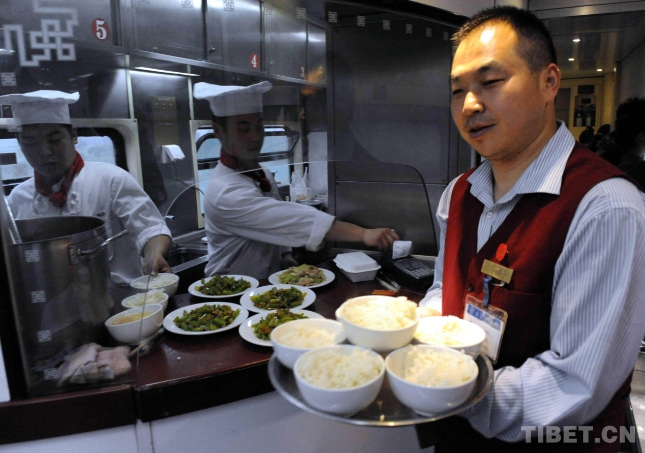 這趟列車的廚師長孫冠軍告訴記者,京藏列車自開通運(yùn)營以來,除了像西紅柿炒雞蛋因藏北高原沸點(diǎn)低而無法炒成片外,其他三四十種可口飯菜都能在列車運(yùn)行中的高海拔地段完成。