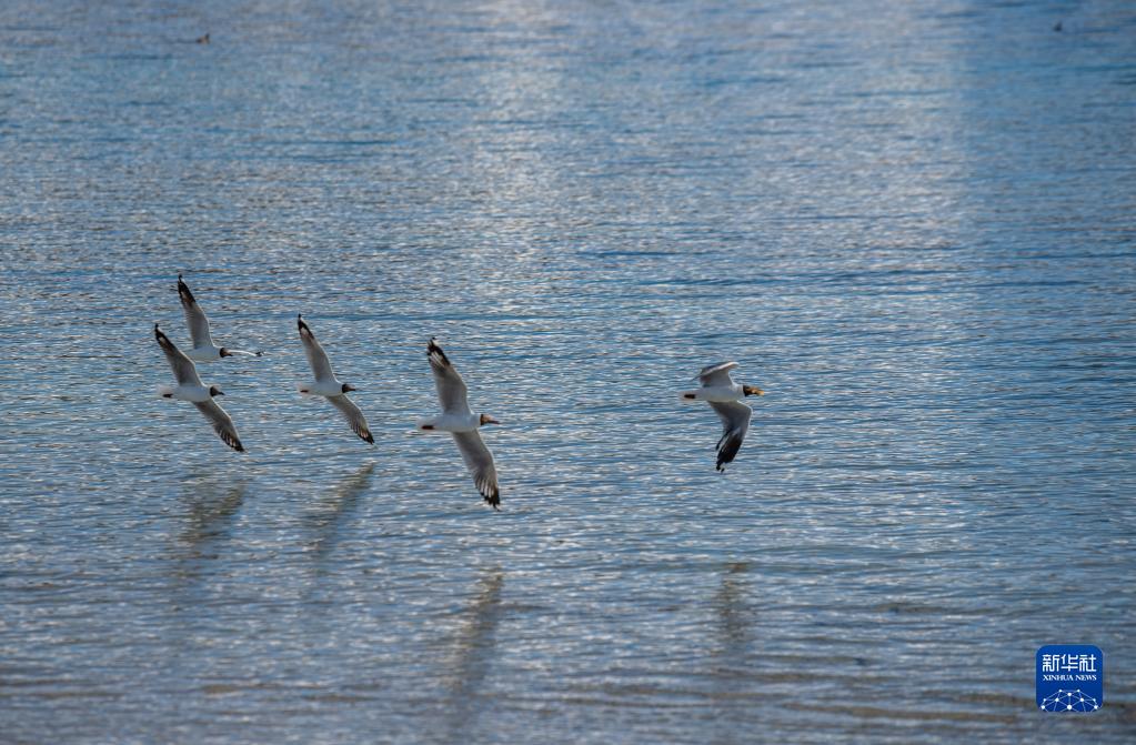 水鳥在羊卓雍錯(cuò)湖面滑翔(7月2日攝)。新華社記者 孫非 攝
