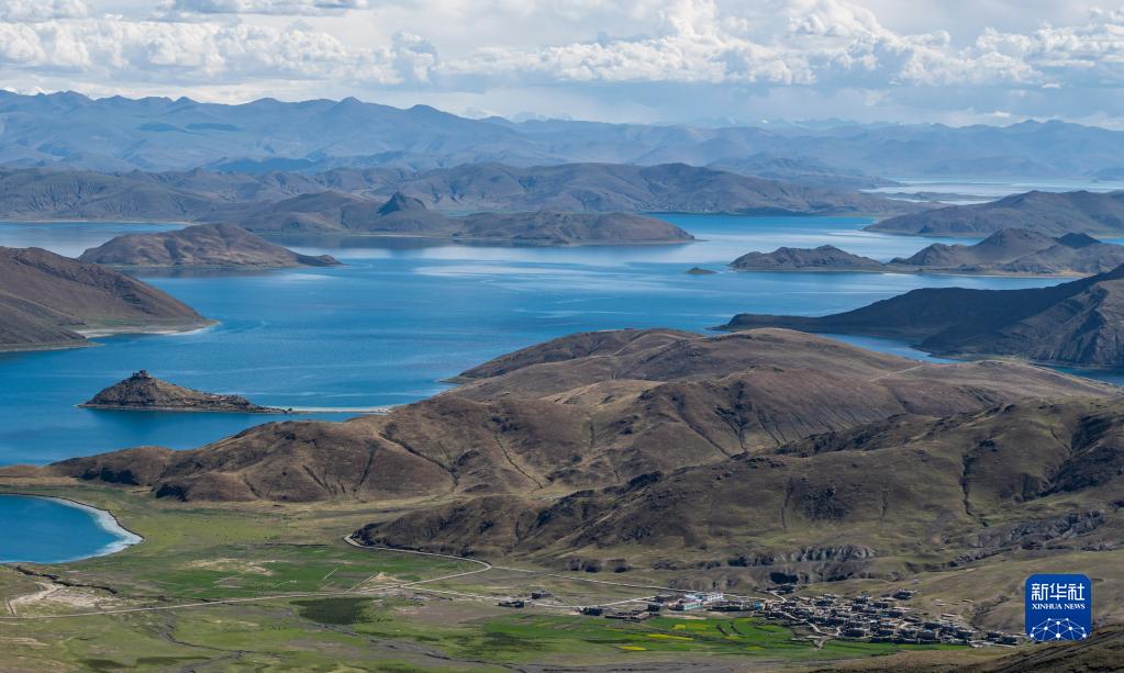 這是羊卓雍錯(cuò)(7月2日攝,無人機(jī)照片)。新華社記者 孫非 攝