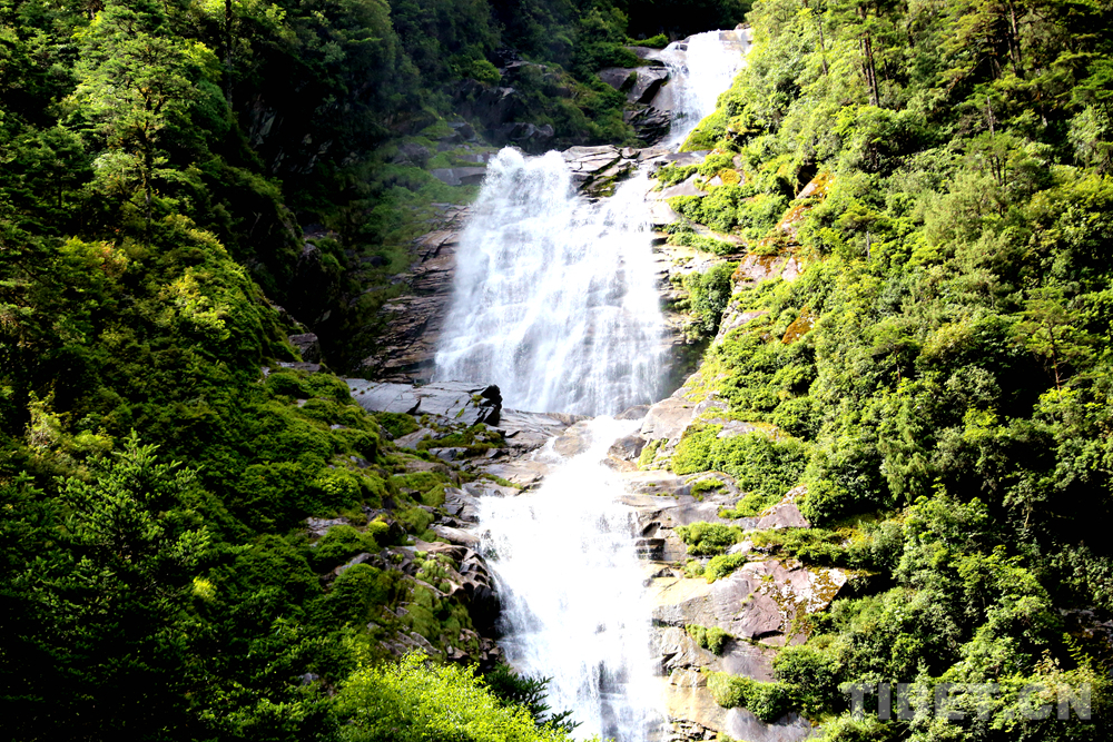 圖為沿扎墨公路進(jìn)入墨脫沿途會與各種飛流瀑布不期而遇,此處為親水疊瀑 攝影:王佳豪