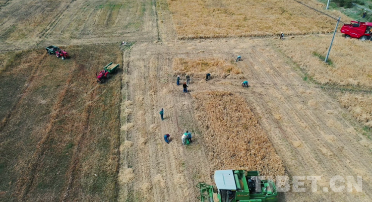 圖為唐嘎鄉(xiāng)唐嘎村村民正在收割青稞