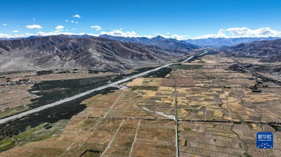 西藏日喀則江孜段富饒的農(nóng)田(9月19日攝,無(wú)人機(jī)照片)。者 晉美多吉 攝