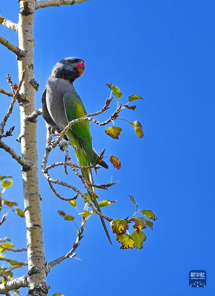 在拉薩市,大紫胸鸚鵡在樹上棲息(10月9日攝)。新華社記者 張汝鋒 攝
