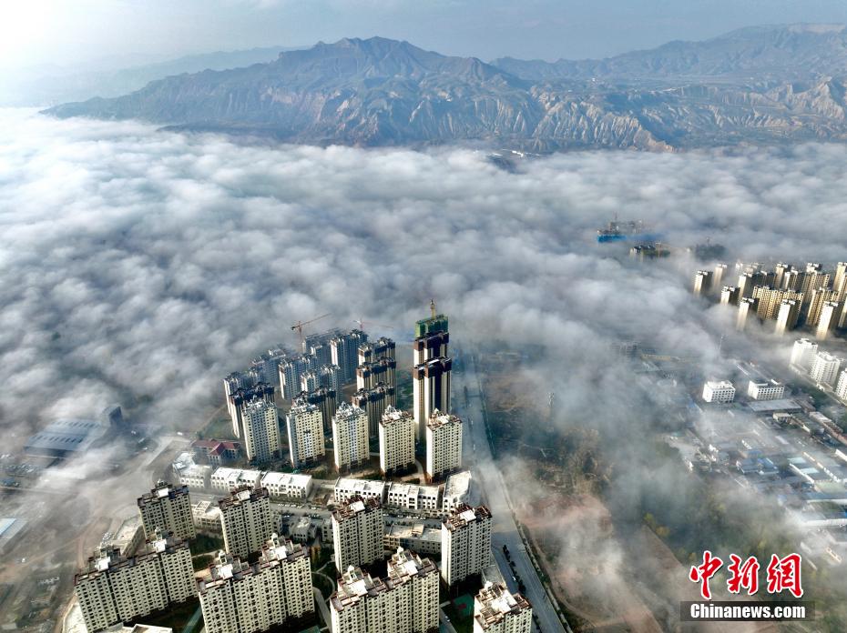 秋日,航拍青海省海東市化隆縣的黃河谷地,一層薄霧如飄紗,籠罩著河面,岸邊現(xiàn)代建筑恍如穿破云海,蔚為壯觀。黃河發(fā)源于青海省,流經(jīng)化隆縣168公里。圖為河面籠罩薄霧,城市建筑猶如穿云海。 李玉峰 攝