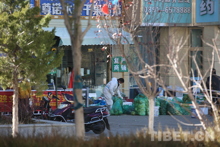 圖為拉薩市柳梧新區(qū)的一家蔬果店的工作人員正在為顧客組貨 攝影:王佳豪