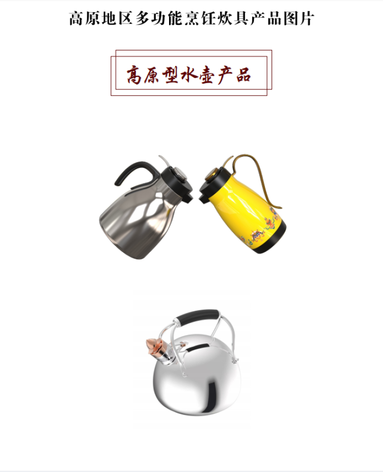 西藏自治區(qū)海拔跨度大,人民群眾生活范圍主要在800米至5000米左右,針對不同海拔高度需要不同烹飪壓力及不同烹飪時間的需求,研發(fā)的高原地區(qū)多功能烹飪炊具可實(shí)現(xiàn)一鍵調(diào)壓、多檔控壓和感溫定時功能。新研發(fā)的壓力鍋針對不同的海拔地區(qū)可以實(shí)現(xiàn)不同的壓力控制,從而在不同的沸點(diǎn)均能快速煮熟食物,實(shí)現(xiàn)與區(qū)外煮熟時間相同,且兼具口感,并保留食物更多的營養(yǎng)成分。新研發(fā)的高原地區(qū)專用燒水壺(明火款、電子款)也實(shí)現(xiàn)了在不同海拔地區(qū)均能與區(qū)外相同時間使壺內(nèi)水沸騰后達(dá)到100℃,從而保障高原地區(qū)廣大群眾都能喝上燒開的水。