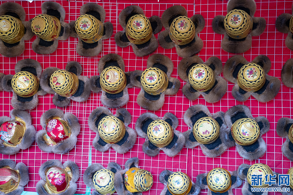 圖為第42屆雅礱物資交流會上展示的金絲藏帽(12月3日攝)。新華網 旦增努布 攝