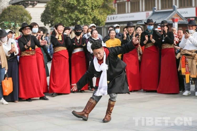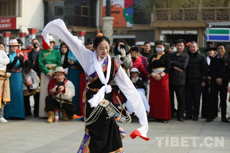 中國(guó)西藏網(wǎng)訊 3月21日,由新的社會(huì)階層人士服務(wù)團(tuán)三分團(tuán)主辦、北京藏地神韻非物質(zhì)文化傳播發(fā)展公司承辦的傳統(tǒng)藏舞公益推廣活動(dòng)在西安舉辦。多位藏舞傳承人與藏舞愛好者齊聚西安大唐西市進(jìn)行公益推廣交流。鍋莊、伊舞,《歡迎你們到來(lái)》《舞動(dòng)青春年華》《吉祥的哈達(dá)》……一曲接著一曲,舞出了藏族舞蹈的無(wú)限魅力?。ㄖ袊?guó)西藏網(wǎng) 記者/呂靜 姚浩然)