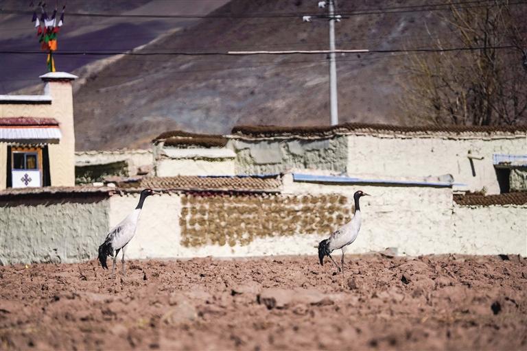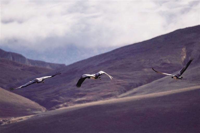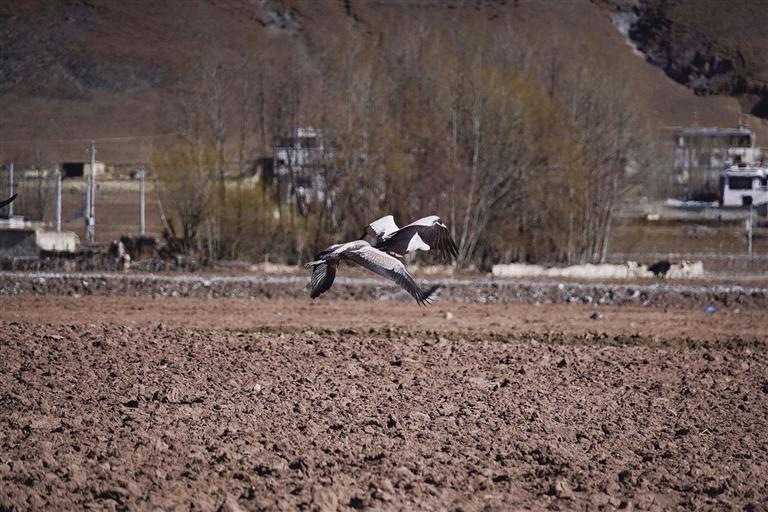 黑頸鶴是國(guó)家一級(jí)保護(hù)動(dòng)物,在藏語(yǔ)中稱為“沖沖”。主要棲息在海拔2500米至5000米的高原、草甸、沼澤地帶。拉薩北部的林周縣平均海拔約4200米,是黑頸鶴的主要越冬地之一。最近這段時(shí)間,對(duì)拉薩市林周縣野保員們來(lái)說(shuō),一邊要忙自家的農(nóng)活,一邊還要巡查候鳥(niǎo)情況?!耙呀?jīng)有一小部分飛走了,估計(jì)再過(guò)半個(gè)月都會(huì)陸續(xù)飛走?!?月23日上午,野保員旦增告訴記者,在虎頭山水庫(kù)和卡孜水庫(kù)越冬的候鳥(niǎo)有一部分已經(jīng)飛走了。野保員口中的“飛走”便是遷徙,遷徙是候鳥(niǎo)的本能,一年一年,跟隨時(shí)間的召喚,完成兩次遷徙:繁殖和越冬。