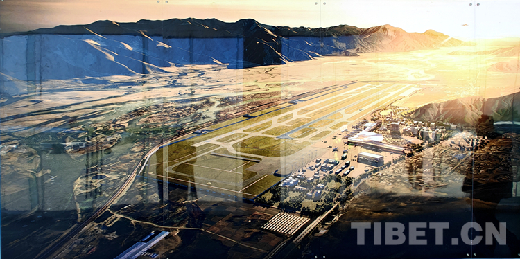 圖為拉薩貢嘎機(jī)場新建第二跑道建設(shè)完成后的拉薩貢嘎機(jī)場效果圖 翻拍:王佳豪