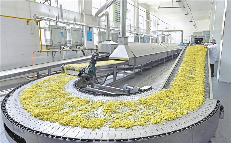 圖為西藏孔巴農(nóng)畜產(chǎn)品開發(fā)有限公司的藏面生產(chǎn)流水線。記者 唐斌 攝