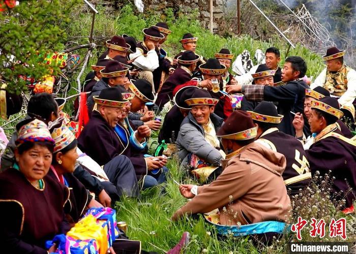 米林村處處生機(jī)盎然,有盛開的桃花、油菜花、綠色的麥田,山林間不時(shí)傳來的鳥鳴聲,似乎都是在一起祈禱今年的豐收。村民們身上還背有經(jīng)文,圍繞全村田園轉(zhuǎn)上一圈,轉(zhuǎn)到每一塊農(nóng)田前都要煨桑祈福豐收,舉行祭祀活動(dòng)。祭祀活動(dòng)后,能歌善舞的婦女們總是要高歌起舞,以此來表達(dá)自己喜悅的心情。