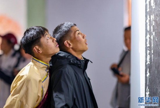 兩名中學(xué)生在西藏牦牛博物館參觀《黃庭堅(jiān)書法文獻(xiàn)展》(5月18日攝)。新華社記者 姜帆 攝