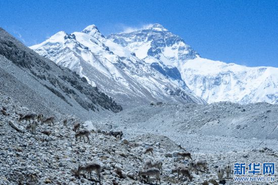 5月9日,棲息在珠穆朗瑪峰登山大本營附近的巖羊。新華網(wǎng) 旦增努布 攝