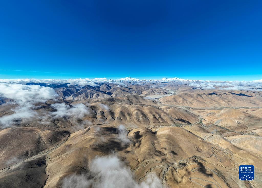 這是在海拔8000米左右高空拍攝的喜馬拉雅山脈群山(5月25日攝,無(wú)人機(jī)照片)。新華社發(fā)(旦增努布 攝)