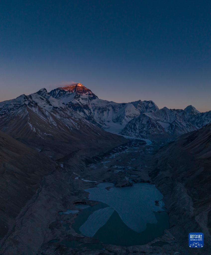 這是在海拔8400米左右高空拍攝的珠穆朗瑪峰(5月23日攝,無(wú)人機(jī)照片)。新華社記者 孫非 攝