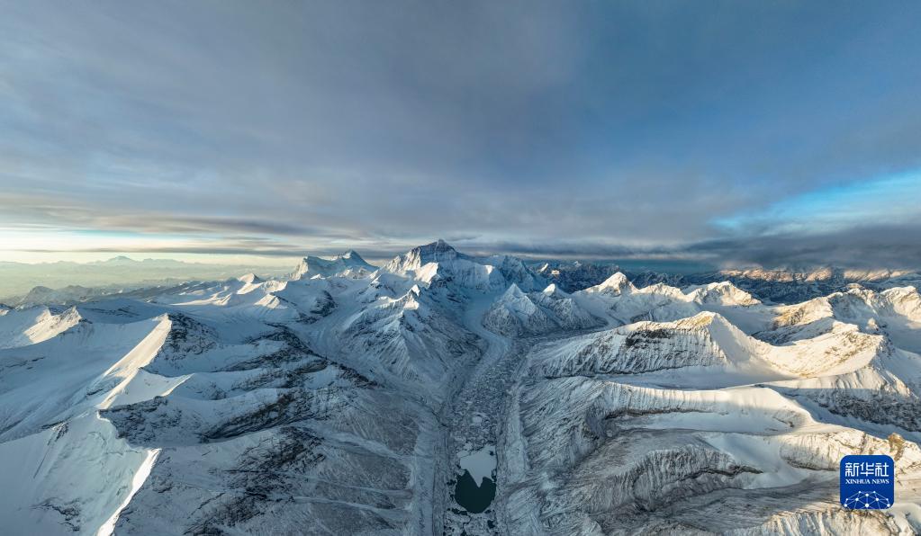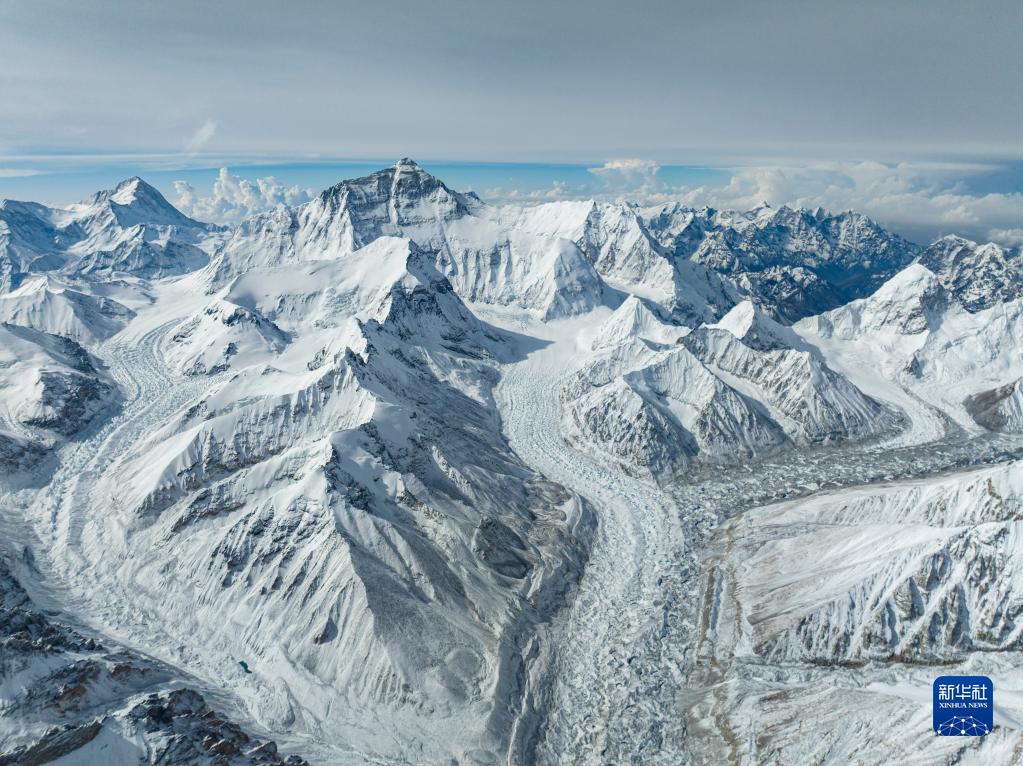 這是在海拔5700米左右空中拍攝的珠穆朗瑪峰(5月11日攝,無(wú)人機(jī)照片)。新華社記者 孫非 攝