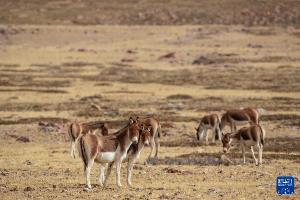 3月29日,藏野驢在西藏阿里地區(qū)普蘭縣境內(nèi)草原上覓食。新華社發(fā)(劉曉東攝)