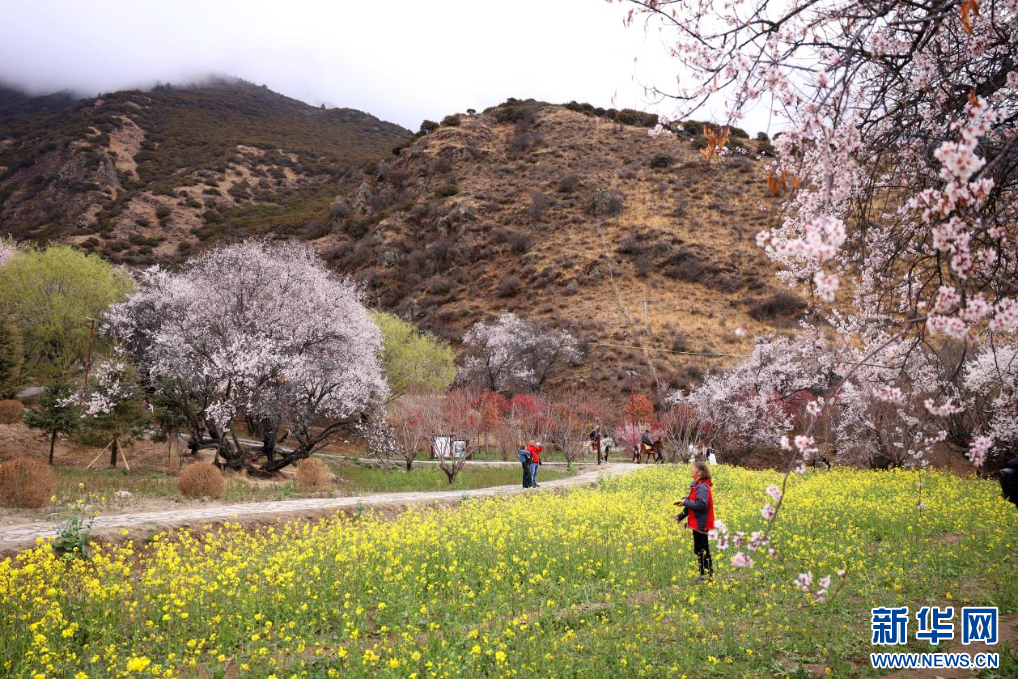 3月31日拍攝的林芝市巴宜區(qū)嘎拉村的桃花與油菜花。 新華網(wǎng)發(fā) 李騰 攝