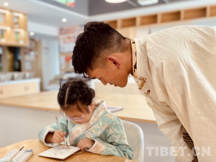錦爐文化推廣中心的吳文杰介紹,“很多社區(qū)家庭愿意讓孩子來體驗唐卡藝術(shù),學習畫法、認知色彩,體驗五彩斑斕的文化藝術(shù),繪制完成的作品可以帶回家”。