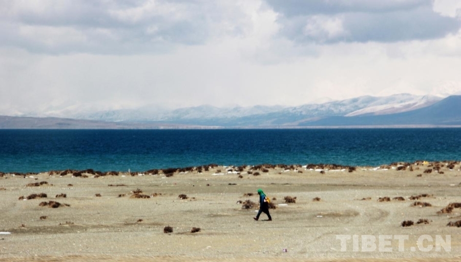 圖為徒步者在位于西藏自治區(qū)阿里地區(qū)普蘭縣的瑪旁雍錯(cuò)旁整理行囊 攝影:劉莉