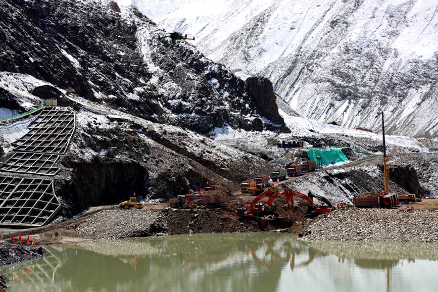 工人駕駛機(jī)械在西藏帕孜水利樞紐及配套灌區(qū)工程進(jìn)行合龍截流。王豐收攝