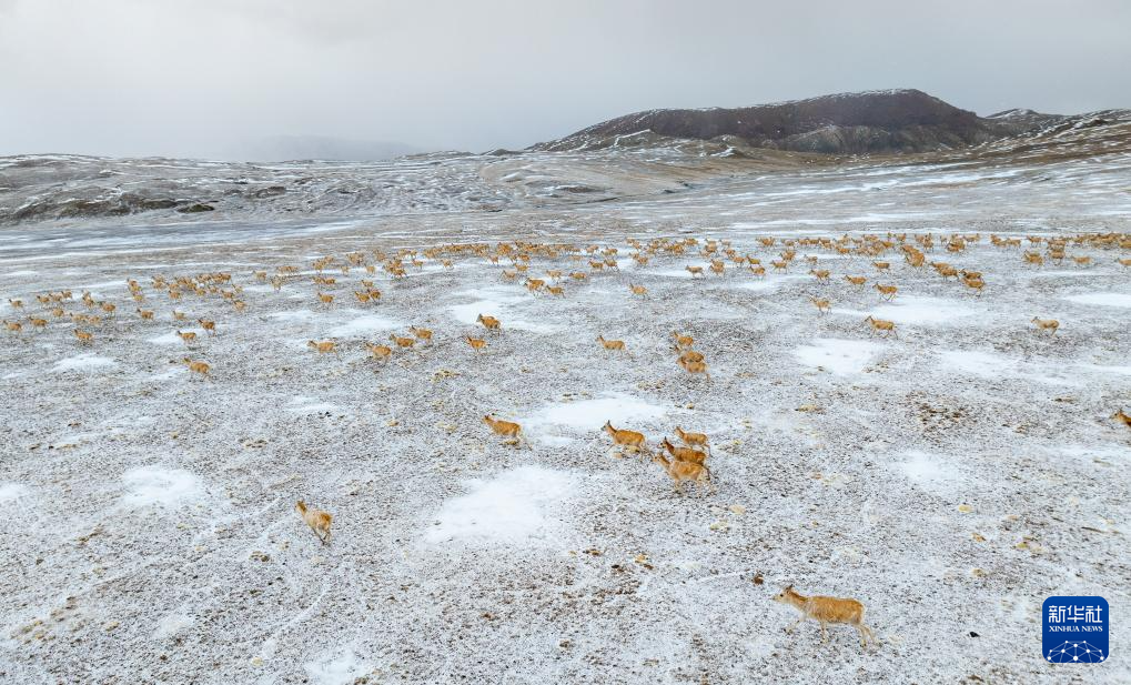 近日,在位于西藏自治區(qū)北部的羌塘國家級自然保護區(qū),大群懷孕的雌性藏羚羊開始集結成群,向習慣產羔地遷徙。