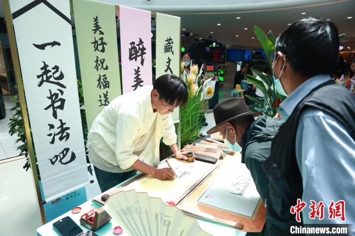 活動現(xiàn)場布置了多個展區(qū),包括風(fēng)景圖片展和藏文書法展區(qū)、特色民俗文化體驗(yàn)區(qū)等,這些展區(qū)不僅展示了林芝的自然風(fēng)光和文化特色,也為民眾提供了視覺上的享受,也增添了濃郁的藏地風(fēng)情。