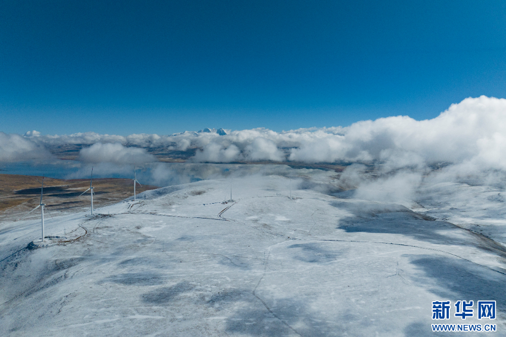 圖為西藏措美哲古風(fēng)電項(xiàng)目一處風(fēng)電機(jī)組(無(wú)人機(jī)照片)。新華網(wǎng) 旦增努布 攝