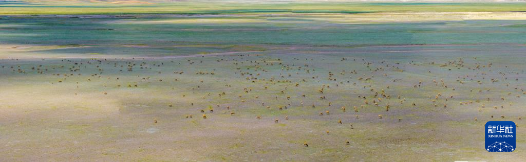 藏羚羊在魯確塘草原集結(jié)(無(wú)人機(jī)照片,6月8日攝)。新華社記者 姜帆 攝??