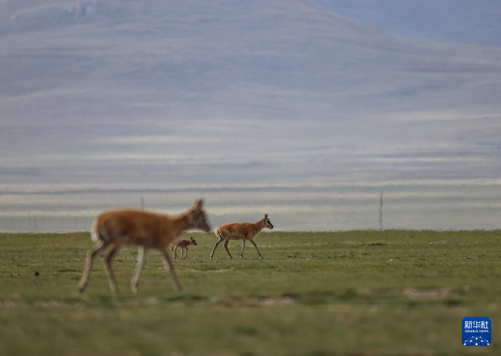 魯確塘草原上的藏羚羊(6月17日攝)。新華社記者 晉美多吉 攝??