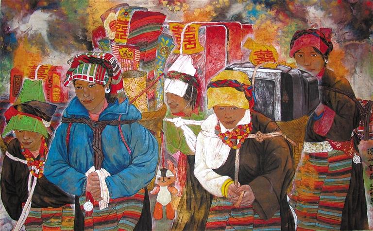 “藏族傳統(tǒng)文化不僅是中華民族文化的重要組成部分,也是世界文化的一角。將藏漢文化有機融為一體,是藝術(shù)家的歷史責任,也是藝術(shù)家取之不盡、用之不竭的永恒題材?!蔽鞑孛佬g(shù)家協(xié)會理事、二級美術(shù)師、西藏美術(shù)館展陳部主任周明暉說。