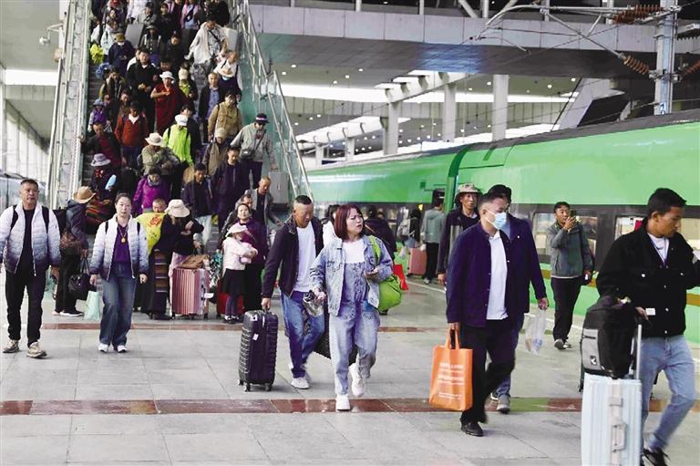同時,為了進(jìn)一步拓展進(jìn)疆入青通道,加開了西寧至蘭州西、烏魯木齊間各1對動車組臨客,為旅客提供了更加便捷的出行選擇。另外,在拉日鐵路通車10周年之際,在拉薩至日喀則間每日安排5對城際動車組上線運行,滿足西藏各族人民出行需求。