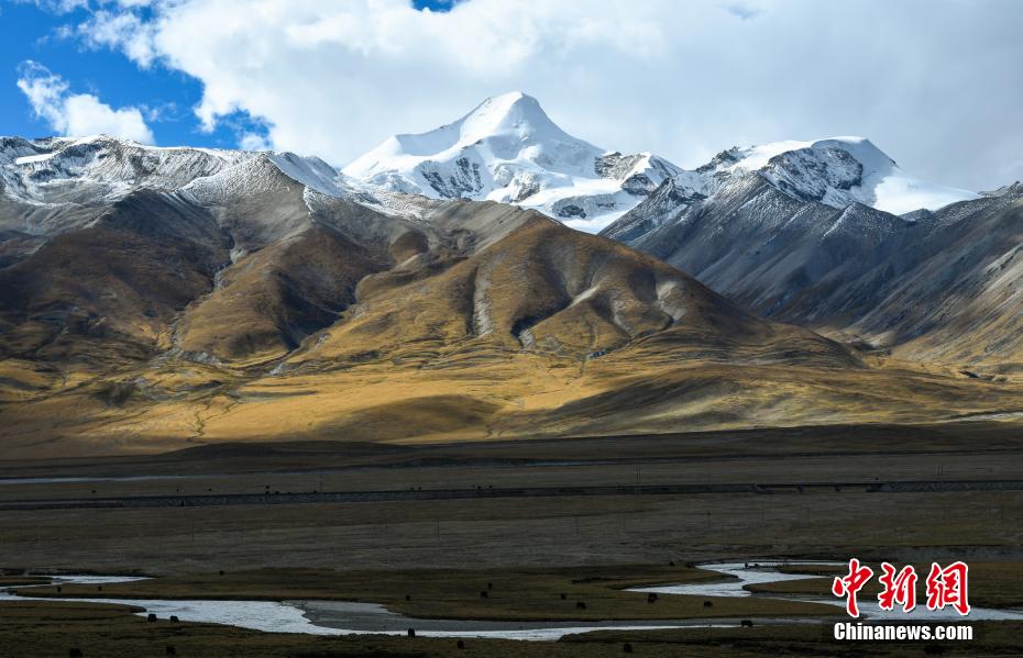9月29日,金秋時節(jié),藏北草原褪去了夏季的翠綠,換上了金色的盛裝。在陽光的照耀下,金黃的草甸、雪山、牛羊、村莊、河流相映成趣,構(gòu)成了一幅美不勝收的畫卷。
