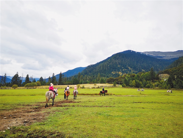 游客在林芝市魯朗小鎮(zhèn)體驗(yàn)騎馬。記者 周輝 攝