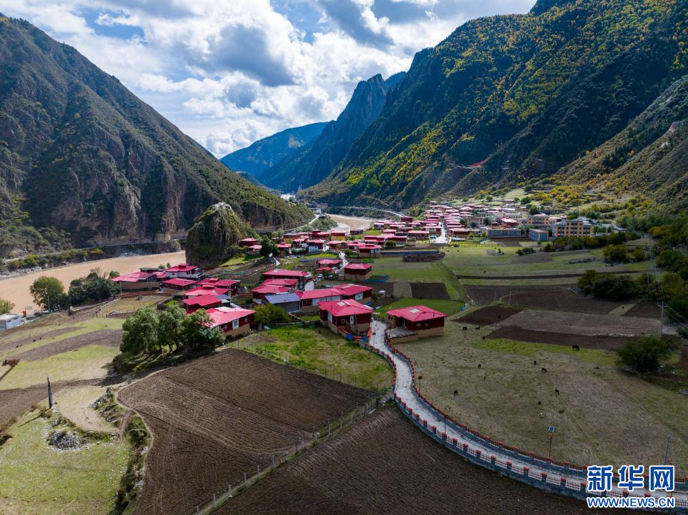 10月19日拍攝的昌都市卡若區(qū)妥壩鄉(xiāng)熱霍村民居(無人機照片)。新華網(wǎng) 旦增努布 攝