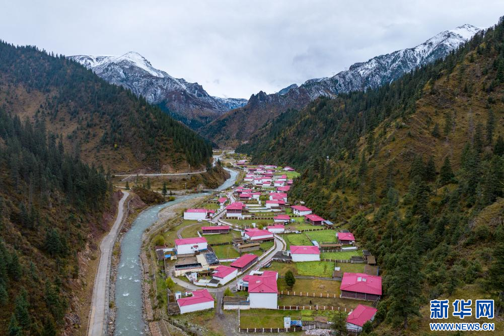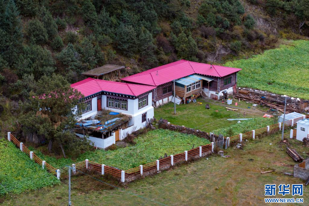 10月21日拍攝的“西藏解放第一村”昌都市江達縣崗托村村貌(無人機照片)。新華網(wǎng) 旦增努布 攝