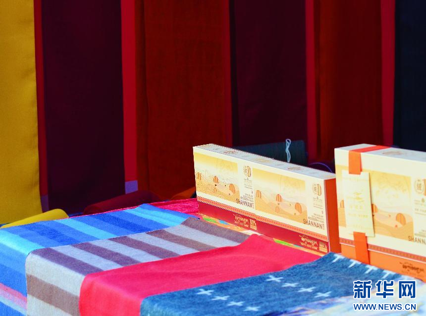 物交會(huì)展位上懸掛和擺放的澤貼爾。新華網(wǎng) 柑丹鴦琦攝