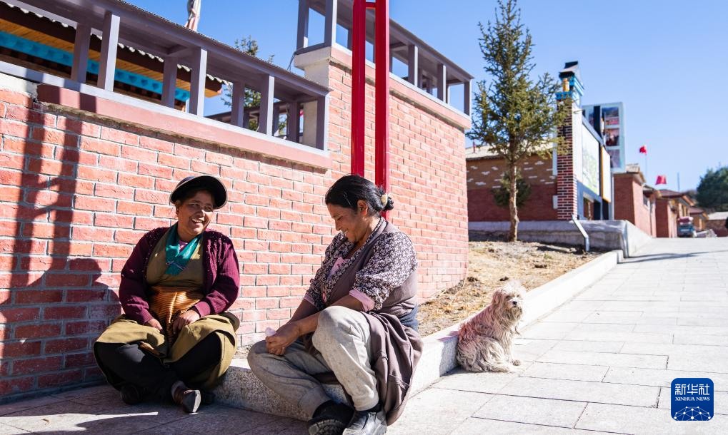 12月15日,達(dá)曼新村的婦女坐在家門口聊天。新華社記者 丁增尼達(dá) 攝 ??