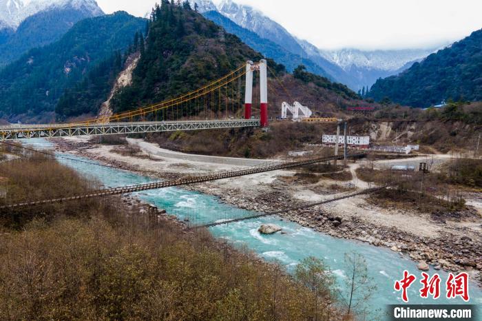 資料圖為2023年1月15日,航拍川藏公路西藏波密通麥大橋,大橋下方為通麥老橋。記者 江飛波 攝