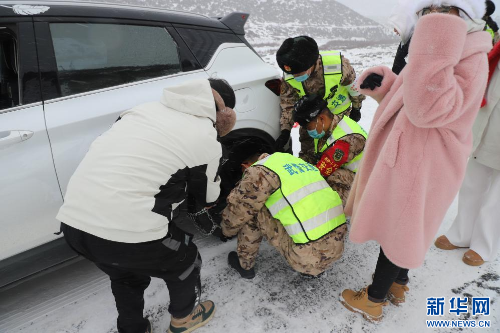 受災(zāi)路段平均海拔4800米,官兵采取“機(jī)械拋雪清表,除雪車跟進(jìn)破冰,撒布機(jī)攤鋪融雪劑”的作業(yè)方式快速展開救援。沿途打通10余個(gè)積雪路段,以最快的速度幫助受困人員脫離困境,很多官兵自覺把身上的外套大衣披在群眾身上,幫他們保暖驅(qū)寒,還為他們分發(fā)熱食熱飲;隨隊(duì)軍醫(yī)耐心安撫受困群眾情緒,檢查傷病員情況,防止因身體消耗較大引發(fā)高原病。