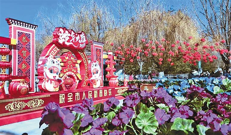 隨著新春的臨近,連日來,拉薩大街小巷燈籠高掛,到處呈現(xiàn)出濃濃的節(jié)日氣氛。 圖為裝飾一新的拉薩市宗角祿康公園大門。 記者 洛桑 王敏 攝